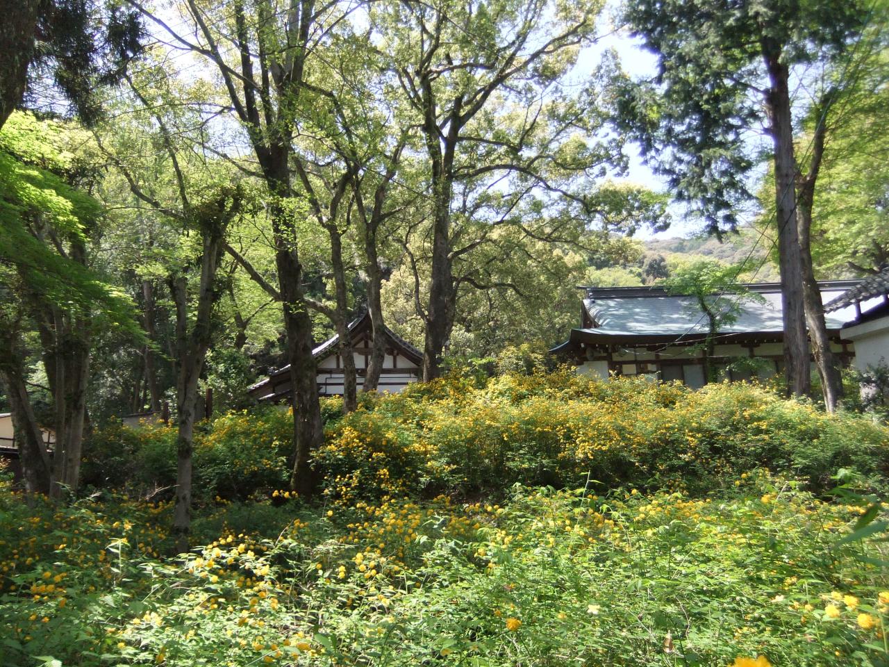 ご祈祷が終われば、ヤマブキの咲く直会(なおらい)会場で、黄金色の